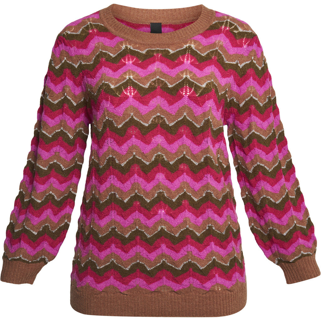 Regular price 89,95 EUR. Save Liquid error (snippets/product-template line 139): Computation results in '-Infinity'%Beautiful pullover in a knitted quality with long sleeves and a round neckline. It has ribbed details, a pointelle pattern and a multicolored, striped design. It is made from a luxurious and warm wool blend, and it has a relaxed and nice fit.