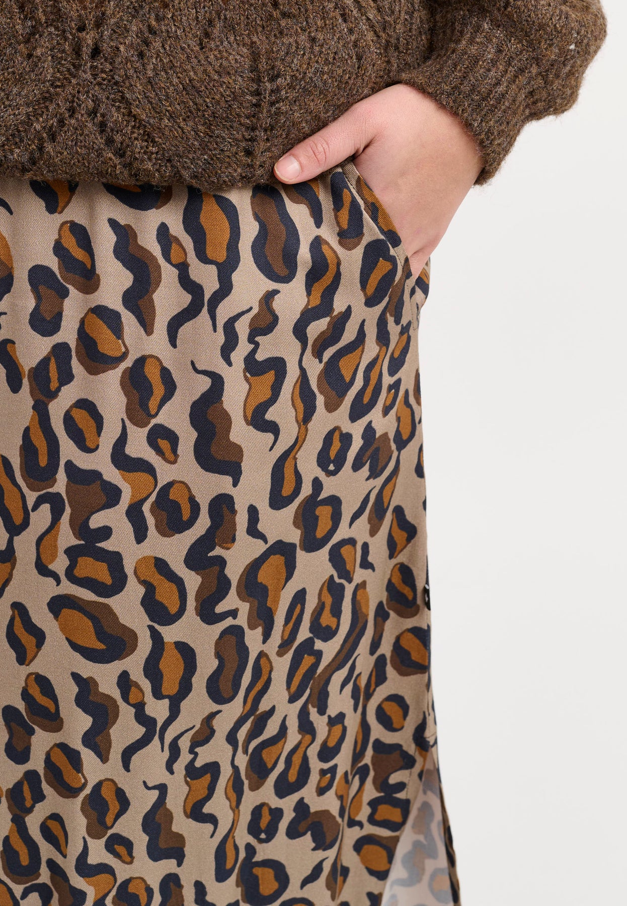 Regular price 69,95 EUR. Sale price 34,98 EUR. Save 50%A stunning A-shaped skirt from Adia featuring a vibrant leopard print that radiates confidence and personality. The soft viscose drapes beautifully around the body, flowing with every step, while the flattering silhouette adds a feminine lightness. The black base with warm brown and beige tones creates a timeless look that’s easy to style for both everyday wear and special occasions.
